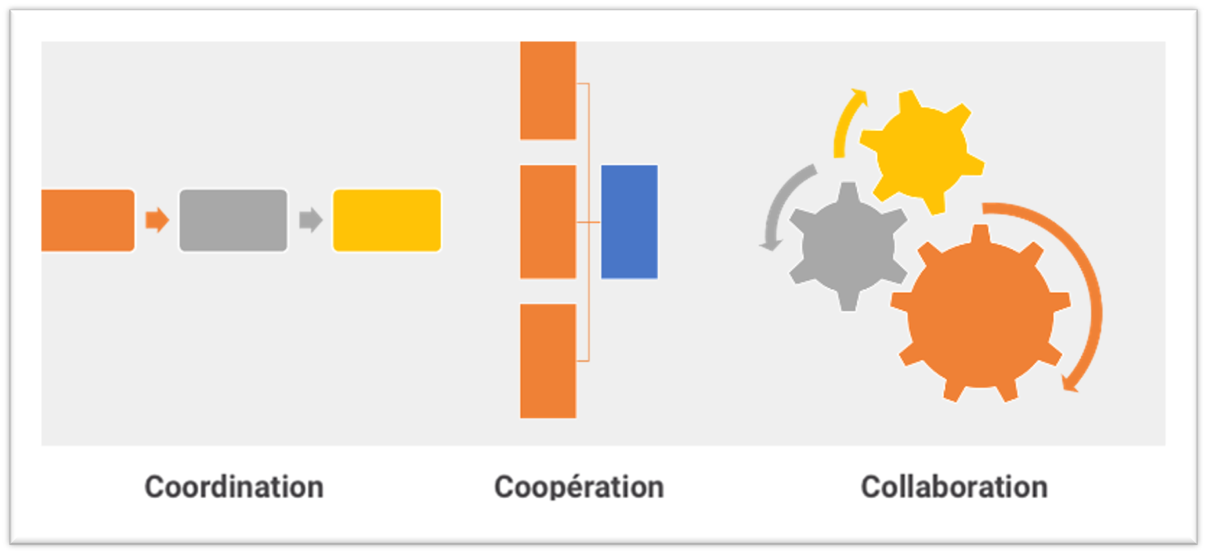 La collaboration au sein d’une même équipe ne se travaille pas de la même façon que la coopération entre services, ou que la coordination dans des projets transverses.
