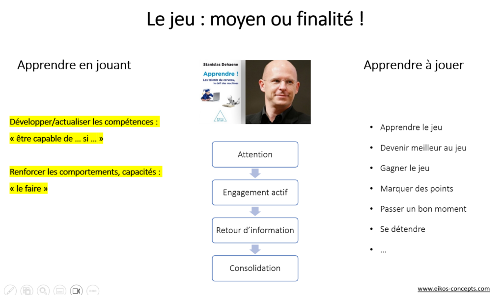 Il y a une différence fondamentale entre apprendre à jouer, apprendre en jouant et jouer pour jouer.
