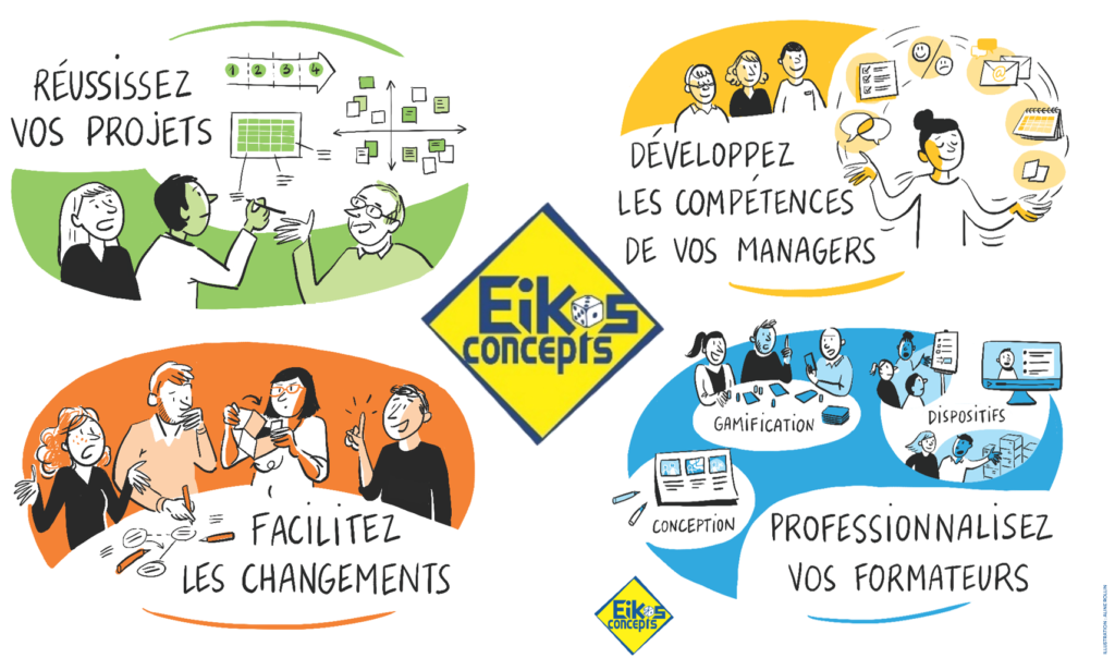 Chez Eikos Concepts, nous intervenons sur des enjeux qui se croisent souvent dans la vie des organisations : management, changement, coopération, projet, efficacité individuelle, relation client, tensions au travail et professionnalisation des formateurs.